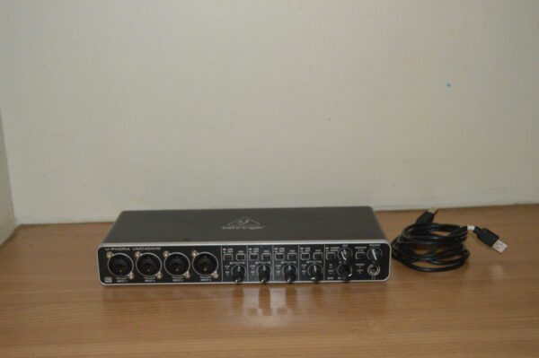This is a pre-owned Behringer U-Phoria UMC404HD, a popular 4-channel USB audio interface trusted by producers, vocalists, and podcasters. Every function has been tested — the preamps, gain controls, monitoring, and all input/output ports work exactly as they should.