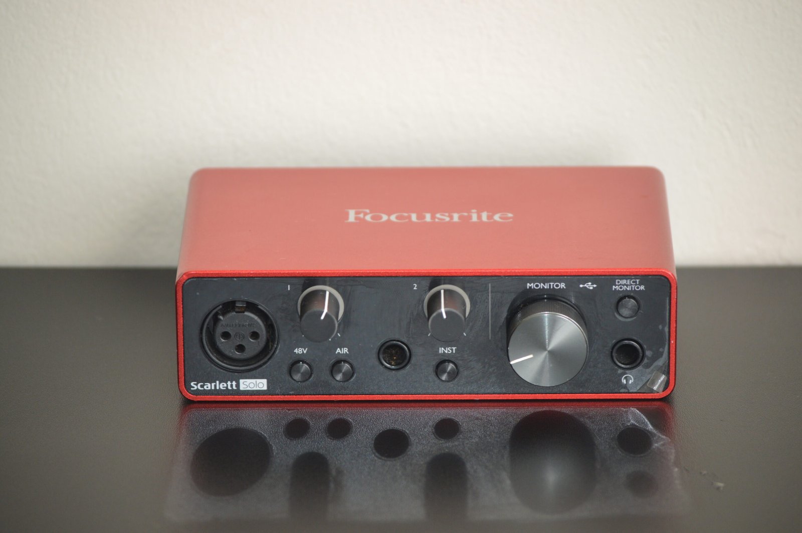The Focusrite Scarlett Solo 3rd Gen is the perfect compact interface for singers, rappers, producers, and podcasters. This unit is in clean, well-kept condition and works 100%. It comes with the original usb cable