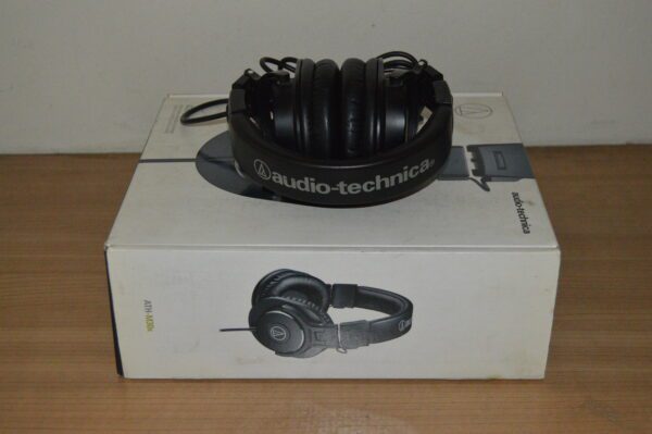 Pre-owned Audio-Technica ATH-M30x studio headphones in great condition, complete with the original box and pouch. Light cosmetic wear on the inside of the headband leather only. Ear pads and sound performance are 100%.