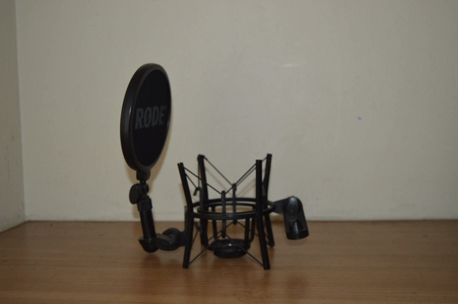 Original RØDE SM6 shock mount with integrated pop filter, pre-owned and in good working condition.