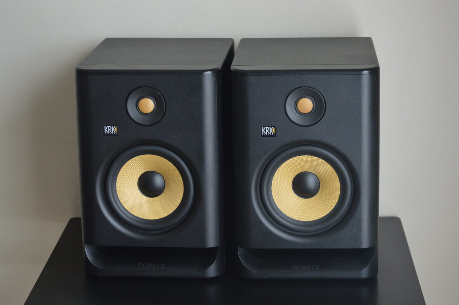 The KRK Rokit 7 G4 studio monitors are a top choice for producers who want powerful, accurate sound with deep bass and clarity.
