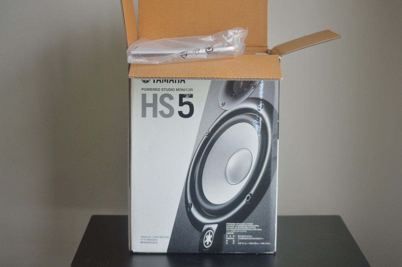 Open box Yamaha HS5 studio monitor (single unit). Never used, like new condition. Includes original box, cables, and manuals.
